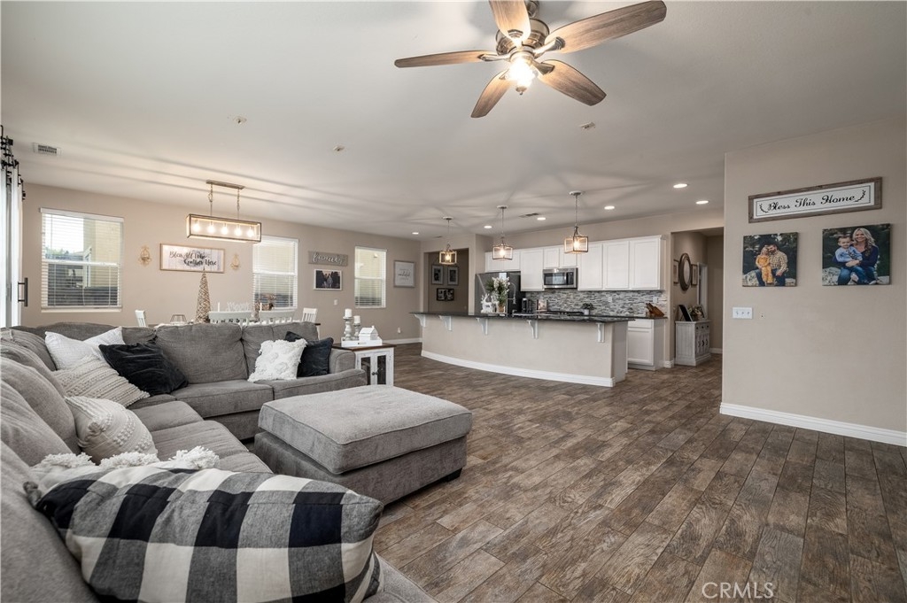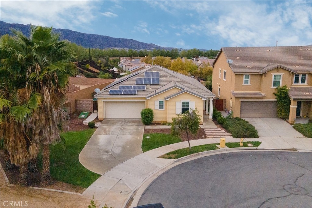 This move-in-ready home has been thoughtfully upgraded throughout, featuring PAID solar, a full suite of smart home features (doorbell camera, smart front-door lock, Nest thermostat, smart irrigation, and smart garage door), premium interior paint, durable ceramic wood-look tile flooring, carpet in the bedrooms, upgraded baseboards, and a deep stainless steel farmhouse sink. The low-maintenance backyard includes pavers.