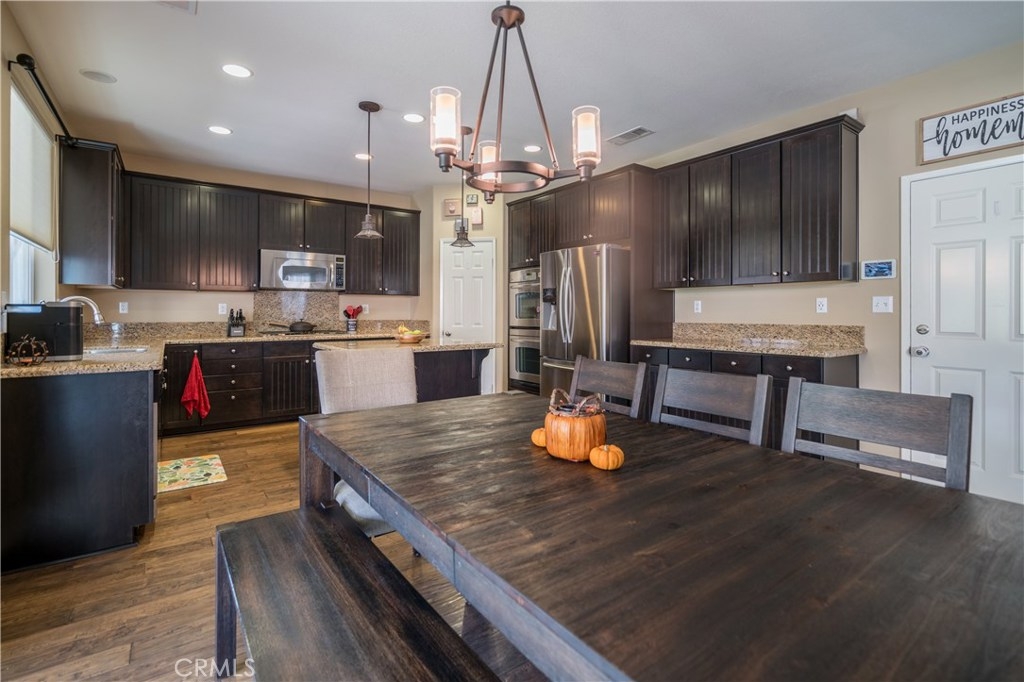 Beautifully upgraded single family home in the highly-sought after community of Sycamore Creek in Corona. This gorgeous well-cared for home features 4 bedrooms, 2.5 baths and 2585 square feet of living space. The main level has beautiful dark hardwood floors throughout, including the large open great room. The kitchen has dark cabinets, granite counter tops, stainless steel appliances, an island and recessed lighting. Upstairs you'll find a large loft area perfect as a second living space or playroom, a large master suite with an attached bath, 3 additional bedrooms, a full bathroom and a laundry room. The home also features neutral paint colors, upgraded staircase, a recently replaced water heater and furnace, a whole house attic fan and solar panels. In addition, the rear yard is perfect for entertaining with a large covered patio, a built-in fire pit, a children's play set, and a large grass area. And the Sycamore Creek Community offers numerous amenities, including a community pool and spa, clubhouse, gym, outdoor cooking area, playground, hiking trails and sports courts. Act quickly and begin the new year in this wonderful home!