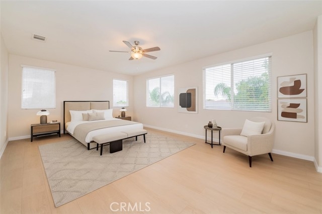 This beautifully designed floor plan is located in the highly desirable Sycamore Creek Community, with excellent school ratings! This generously sized 6-bedroom, 3-bath home feels larger than its actual square footage, thanks to its well-thought-out layout that maximizes functionality. The open floor plan offers various lifestyle options, such as a home office, workout room, or accommodations for multiple occupants—there are so many possibilities! As you enter, you’ll find a formal dining area next to the stairs, alongside a spacious formal living room or multi-purpose room. The open kitchen flows into a large family room with a cozy fireplace. There is 1 bedroom and 1 bathroom with a shower conveniently located downstairs, as well as ample storage space in the laundry room, which features a large sink. The enormous master bathroom and double-sized walk-in closets offer plenty of storage room. This home is light and bright with additional storage closets and cabinets throughout. Recent updates include a fresh interior designer paint color, new luxury flooring, a new air conditioning unit, and a new water heater unit. The low-maintenance front and backyard feature artificial turf and desert plants, allowing for significant savings as there's no need to hire a gardener. The property also includes a three-car garage and a long driveway. The community has low HOA fees and offers a range of amenities, including a clubhouse, entertainment area, pools, a fitness center, walking trails, parks, and sports courts. Plus, it’s conveniently located near several shopping centers. With so many great features, this home is a must-see!