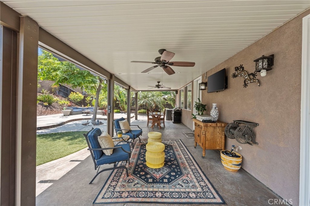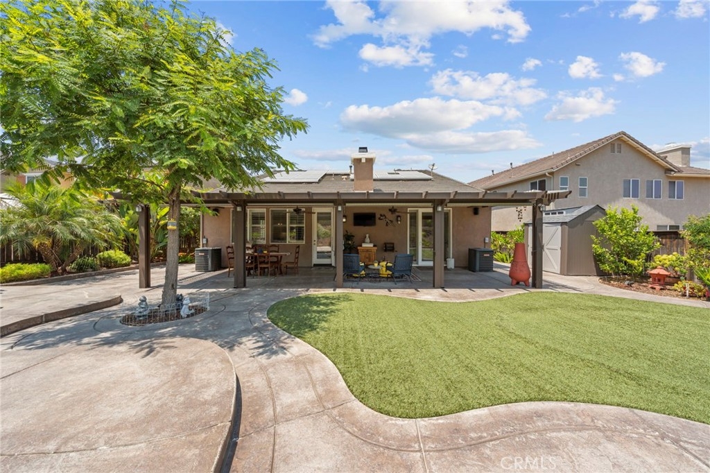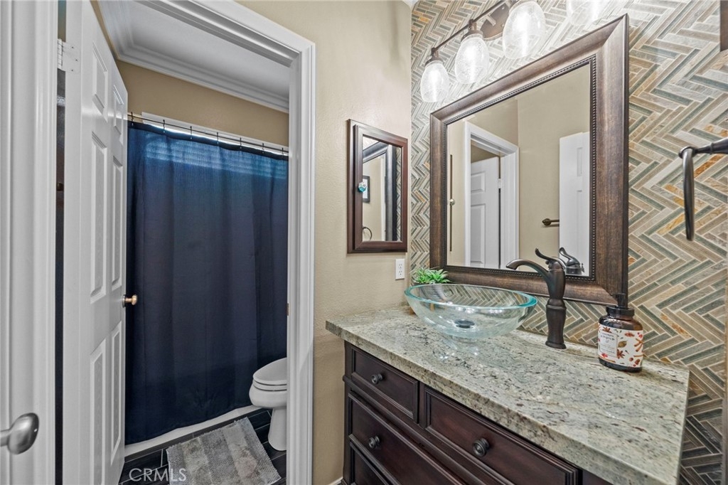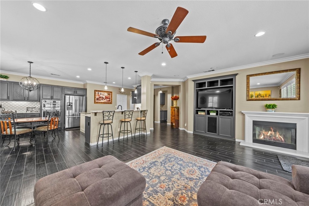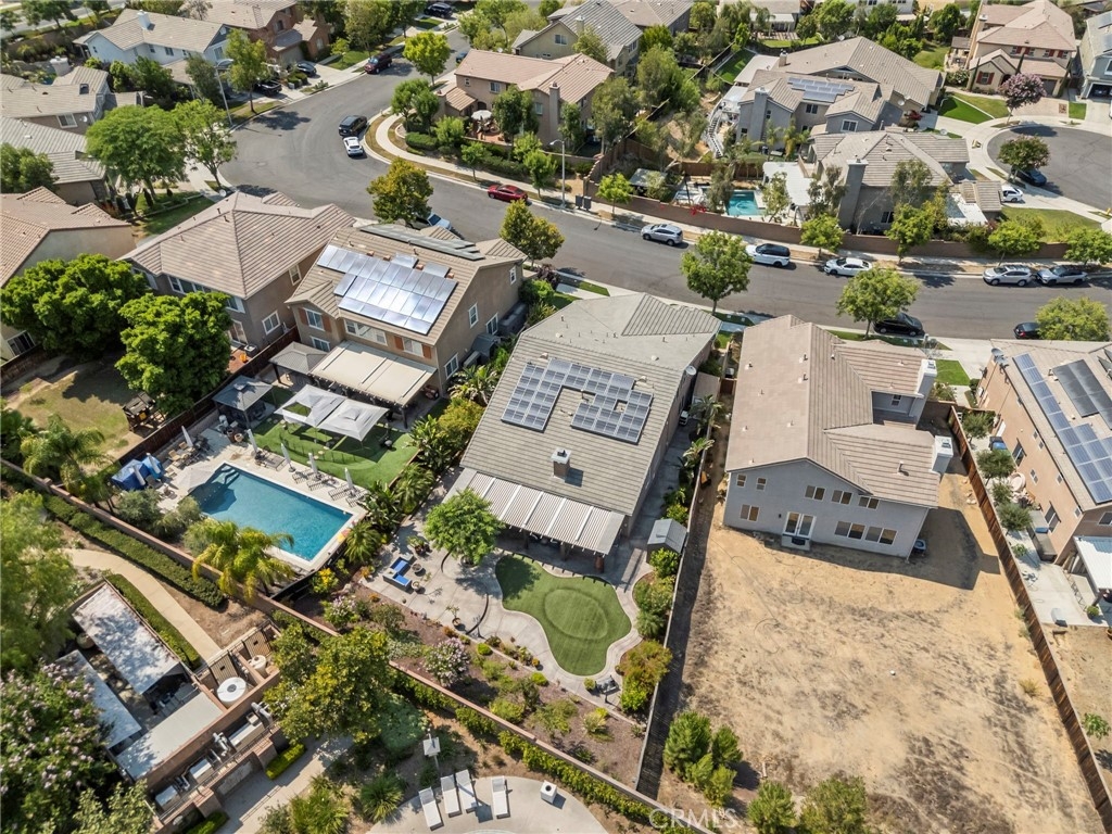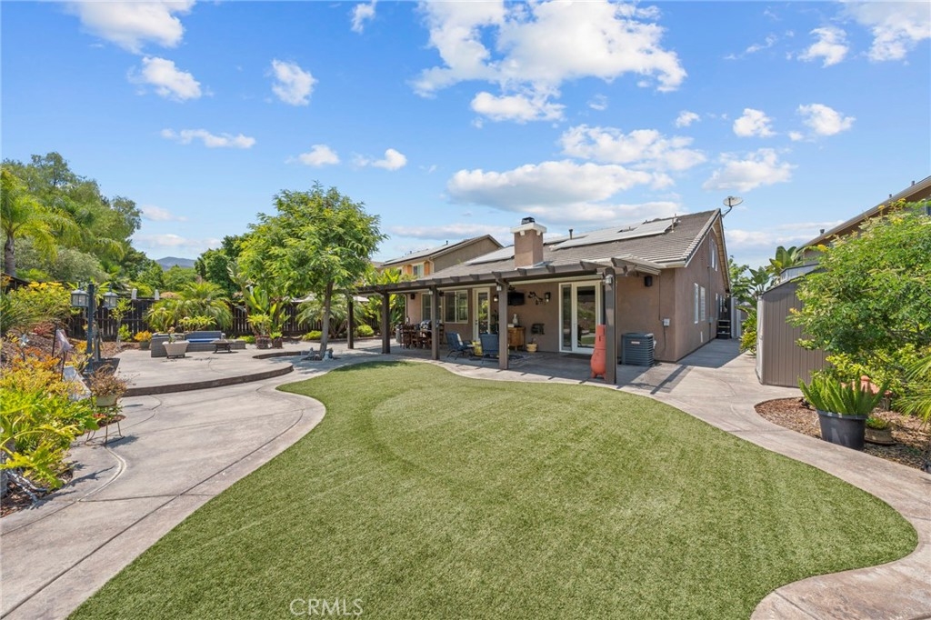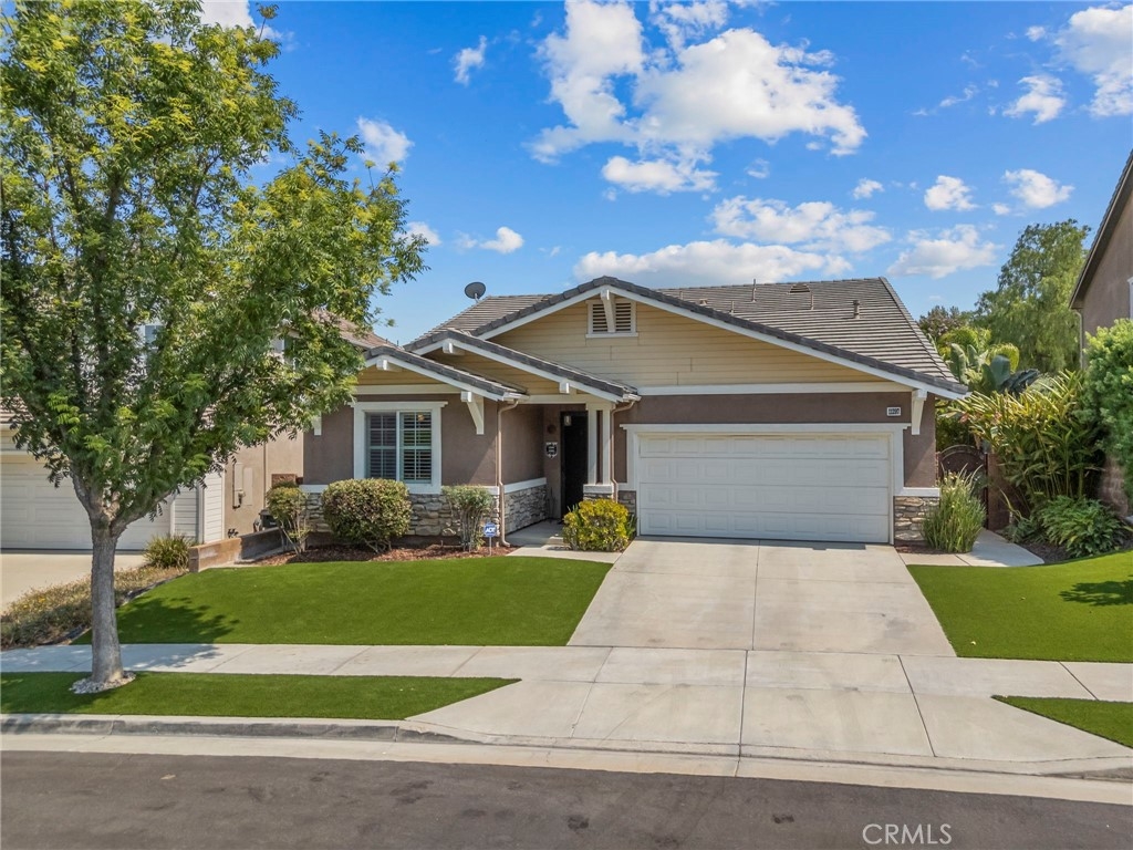 Located in the highly desirable Sycamore Creek community this move-in ready home featuring 4 bedrooms, 4 full bathrooms, an office, and an expansive upstairs loft. This highly sought-after floor plan lives like a single story, with the primary suite, two guest bedrooms, an office, and three full bathrooms conveniently located on the main floor. A formal dining room sits separately from the main living area, while the open-concept kitchen and spacious family room create the perfect setting for everyday living and entertaining. The beautifully remodeled kitchen features an island, granite countertops, custom backsplash with a pot filler, stainless steel appliances, ample cabinet space including pull-out drawers for added functionality, a coffee bar, and a breakfast bar that opens seamlessly to the family room. The spacious primary en-suite offers direct access to the backyard through a private door. It also features a bathroom with a jetted bathtub, a walk-in shower, and a large walk-in closet complete with custom organizers. Upstairs offers a versatile bonus space ideal for guests or multigenerational living, complete with a large loft, private bedroom, full bathroom, and a convenient mini kitchenette perfect as a private retreat or flexible living area. Step outside to your lush and serene backyard oasis, thoughtfully designed with artificial turf, custom hardscaping, and mature fruit trees including lemon, lime, orange, and calamansi. The Alumawood patio cover with built-in lighting, ceiling fans and outdoor speakers makes it an entertainer’s dream, and the yard is large enough to add a pool if desired. Additional highlights include dual AC units, built-in speakers inside and out, plantation shutters, crown molding, wainscotting, a security screen door, tankless water heater, and Solar for energy efficiency. The home also includes a 2 car garage, which features epoxy flooring, cabinets, a workbench, and overhead and wall storage racks. The community has LOW HOA fees, which include pools, fitness center, clubhouse, walking trails, and parks. Deleo Regional Sports Park is centered in Sycamore Creek offering NEW PICKLEBALL COURTS, NEW BMX BIKE PARK, Skate Park, Dog Park, Soccer & Baseball Fields, Tennis & Basketball Courts, BBQs & Picnic Areas! Residents enjoy close proximity to shopping, dining, golf courses, hiking trails, nearby 15 freeway access, and GREAT SCHOOLS.