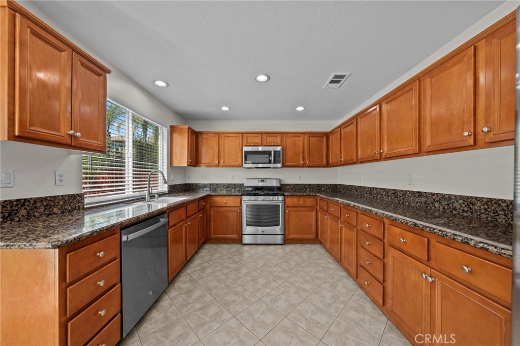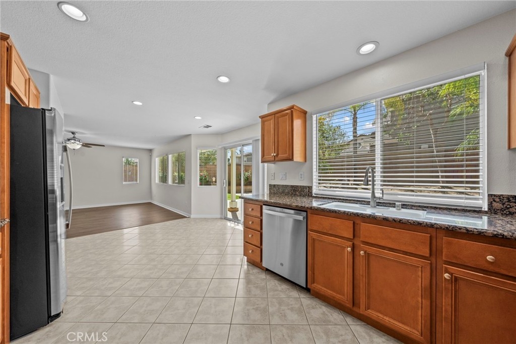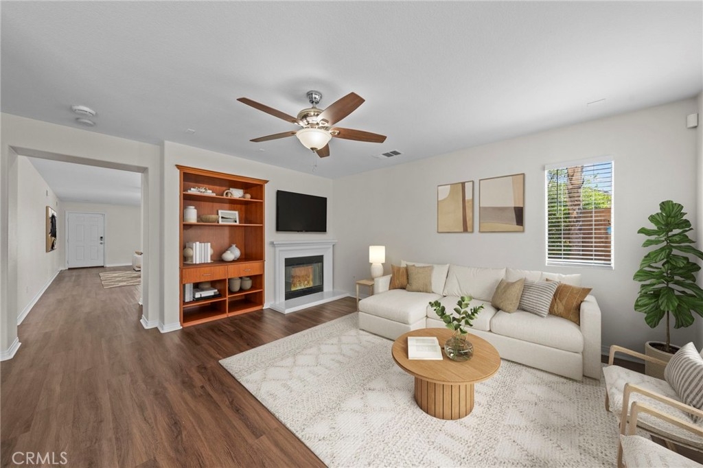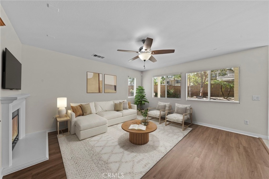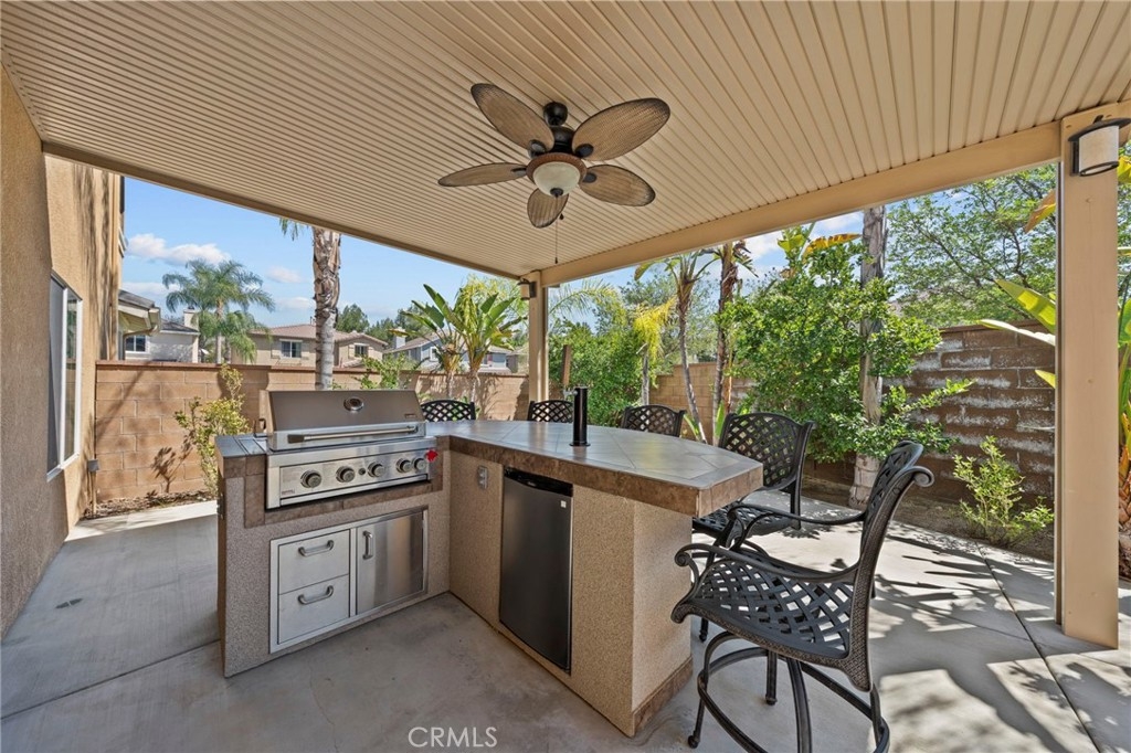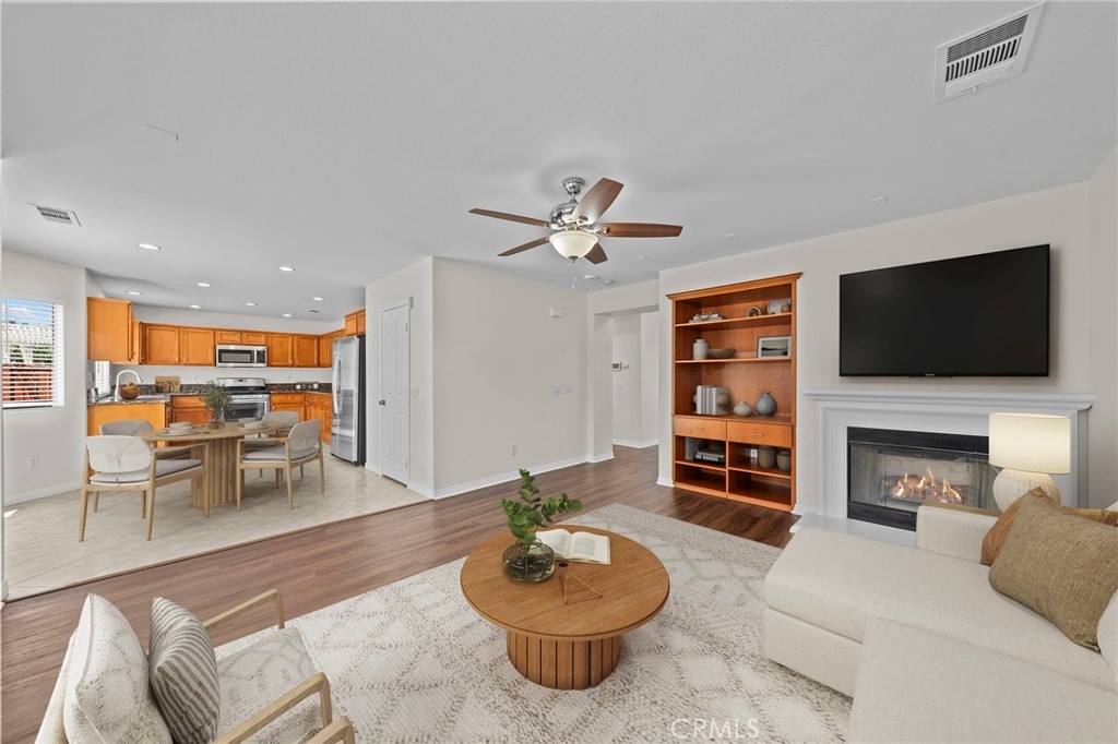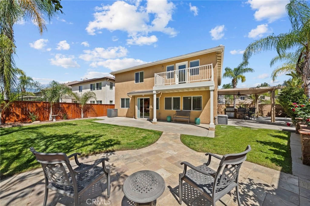 MOVE-IN READY 4-bedroom, 3-bathroom home with a spacious loft, situated on a desirable CORNER LOT in the highly sought-after Sycamore Creek community. As you enter, you’re welcomed by a formal living and dining area that creates a warm and inviting first impression. The kitchen offers ample counter space, stainless steel appliances, and a large walk-in pantry, opening seamlessly to the dining area and family room with a cozy fireplace, perfect for both everyday living and entertaining. Downstairs features a generously sized bedroom and a convenient full bathroom. Upstairs, you’ll find a large loft along with three additional bedrooms, including the spacious primary suite with dual vanities, a soaking tub, a walk-in shower, and a large walk-in closet with custom closet organizers. Step out onto the private balcony off the primary bedroom and enjoy views of the beautifully landscaped backyard and surrounding mountains. All upstairs bedrooms include walk-in closets, and the laundry room is conveniently located on the second floor. Additional upgrades include newer interior and exterior paint, updated flooring and carpet, newer appliances, and a newer AC condenser. The home has been well maintained with regular landscaping and care. The spacious two-car garage features a new overhead motor and plenty of storage. Step outside to a pool-sized backyard with a large grassy area, built-in barbecue with a built-in kegerator setup under an Alumawood patio cover, ideal for entertaining. The yard is beautifully landscaped with mature trees and rose bushes, offering both privacy and charm. This community offers LOW HOA fees with pools, fitness center, clubhouse, walking trails, and multiple parks. Deleo Regional Sports Park adds NEW pickleball courts, BMX bike park, skate park, dog park, soccer and baseball fields, tennis and basketball courts, plus picnic and BBQ areas. Conveniently located near shopping, dining, golf, hiking trails, top-rated schools, and quick freeway access.
