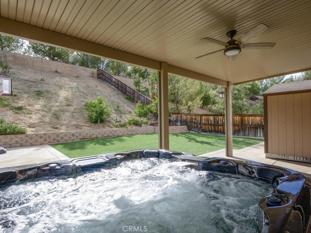 Beautiful 4 bedroom, 4 bath Corona home for sale. This home is the best bargain in Sycamore Creek because not only is it a great price, the solar is paid, and the hot tub and shed stay. You'll enter into the formal living room, with warm wood floors that lead you to the formal dining area. The gourmet kitchen has stainless steel appliances, slab granite countertops, and custom cabinetry. From the kitchen, you'll have access to the inviting family room, which features a cozy fireplace and access to the backyard. There is a powder room downstairs, too. Upstairs you'll find the 4 bedrooms including the romantic master suite with a full private bath. The bath has a jetted tub, a separate glass shower, double sinks, and an enormous walk-in closet. Bedroom 2 is a junior master suite with a private full bath. There are two more roomy bedrooms that share a hall bath. The laundry room is conveniently located upstairs, too. The backyard is a peaceful oasis with a newer hot tub, a stamped concrete patio, Alumawood® cover with lights and fan, artificial turf, a gated dog run, Tuffshed, and fruit trees (Pomegranate, Apple, Peach). Private location too, as there are no neighbors in the back. Upgrades include paid-for solar panels, a whole house fan, air purifier, water softener, raised panel doors, wood and tile floors, crown molding, ceiling fans, an upgraded electrical panel, and a 50 amp subpanel in the garage. Located in Sycamore Creek, a master-planned community that features miles of recreational trails, an award-winning school (Todd Academy TK - 8), a swim complex with two pools and a splash park, a clubhouse, an eight-acre sports park, and a 25-acre regional park. Close to dining, shopping, entertainment, and commuter close to the 15 freeway. Plan your visit today!
