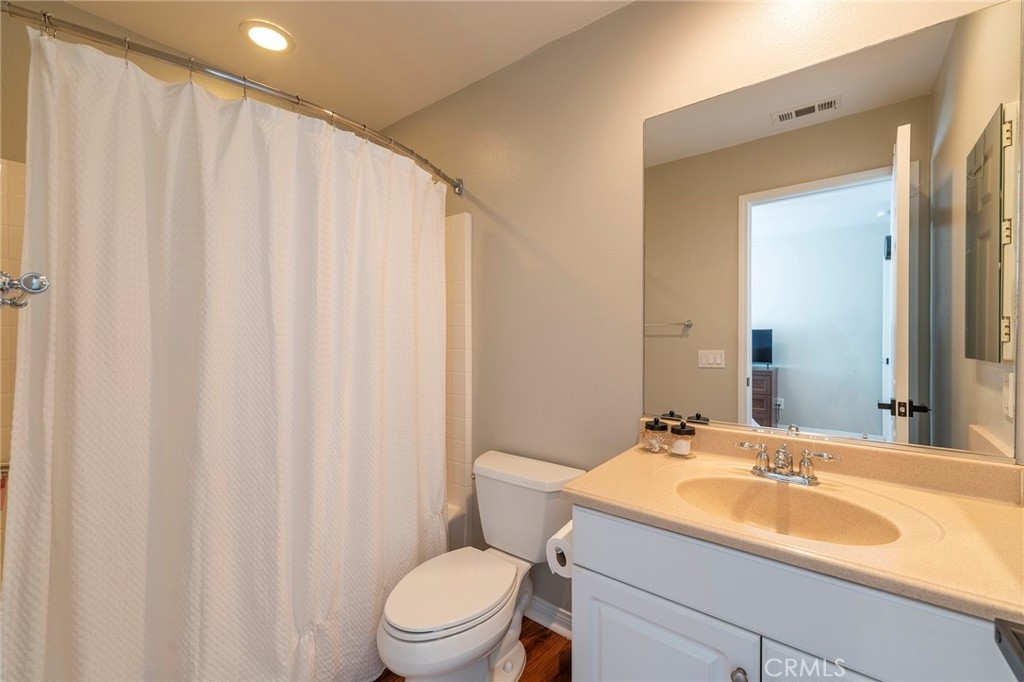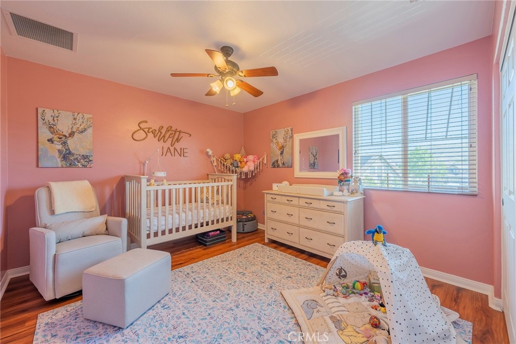 Beautiful 4-bedroom, 4-bath home with 2587 sqft of liveable space, located in the highly sought after Sycamore Creek area. Enter the home in the formal living room with warm wood floors that lead to the formal dining area that is separated from the spacious family room. The family room features a cozy gas fireplace, access to the spacious backyard, and the large gourmet kitchen. This kitchen has new black stainless-steel appliances (September 2022), slab granite countertops, and custom cabinetry. There is a powder room off the kitchen which is conveniently located at the entrance from the garage. The 4 bedrooms are all upstairs and includes the LARGE master suite with a full private bath, jetted tub, separate glass shower, double sinks, and an enormous walk-in closet. Bedroom 2 is a junior master suite with its own private full bath. There are two more roomy bedrooms that share the hall bathroom, which also has double sinks. The spacious laundry room is conveniently located upstairs. The backyard is an OASIS with a stamped concrete patio, Alumawood® cover with lights and fan, and a gated dog run. A Tuff-shed stays with the property. Sod was put in March 2023 with a new sprinkler system, programmable from the garage. Private location as there are no neighbors in the back. This is the perfect home for the health conscious family with bonus HVAC UV light sanitizer/air purifier that eliminates molds and mildew, kills viruses and bacteria, and reduces odor. Home also features Rainsoft reverse osmosis and water softener system that replaces the need for purchasing bottled water. Also includes solar panels (lease is paid, in full), a whole-house fan, raised panel doors, vinyl floors throughout the entire house (upstairs installed Sep 2022), new blinds (2022), crown molding, ceiling fans, an upgraded electrical panel, and a 50-amp subpanel in the 3 car tandem garage with EV charger. Situated in the canyons of the Cleveland National Forest with easy access to 27 different trails, Sycamore Creek is a master-planned community that features, an award-winning school (Todd Academy TK - 8), a swim complex with two pools and a splash pad park, a clubhouse with gym, an eight-acre sports park, and a 25-acre regional park. Close to dining, shopping, entertainment, Glen Ivy Spa, and commuter close to the 15 freeway. Short drive to Temecula! Come tour this amazing property and make it yours!
