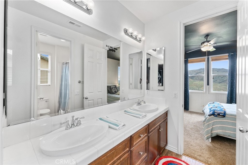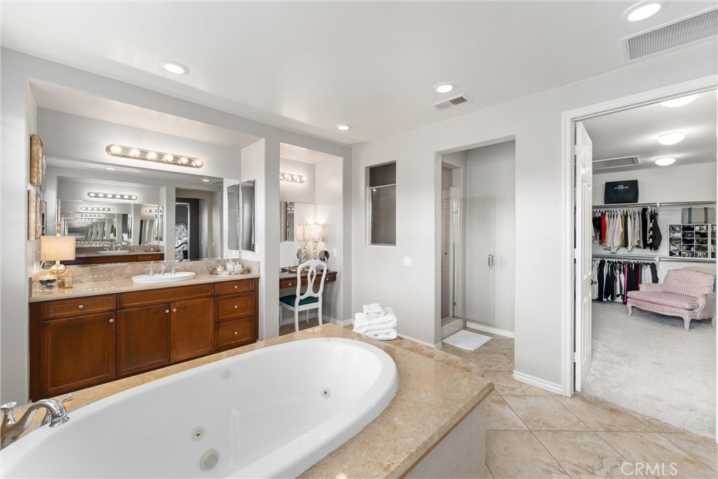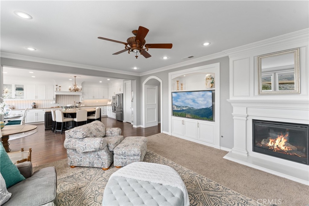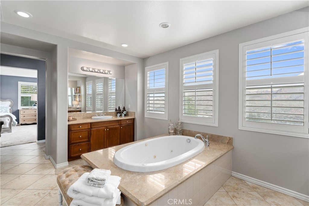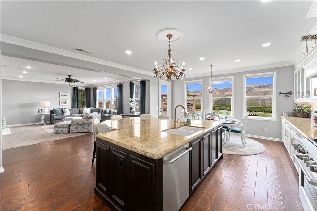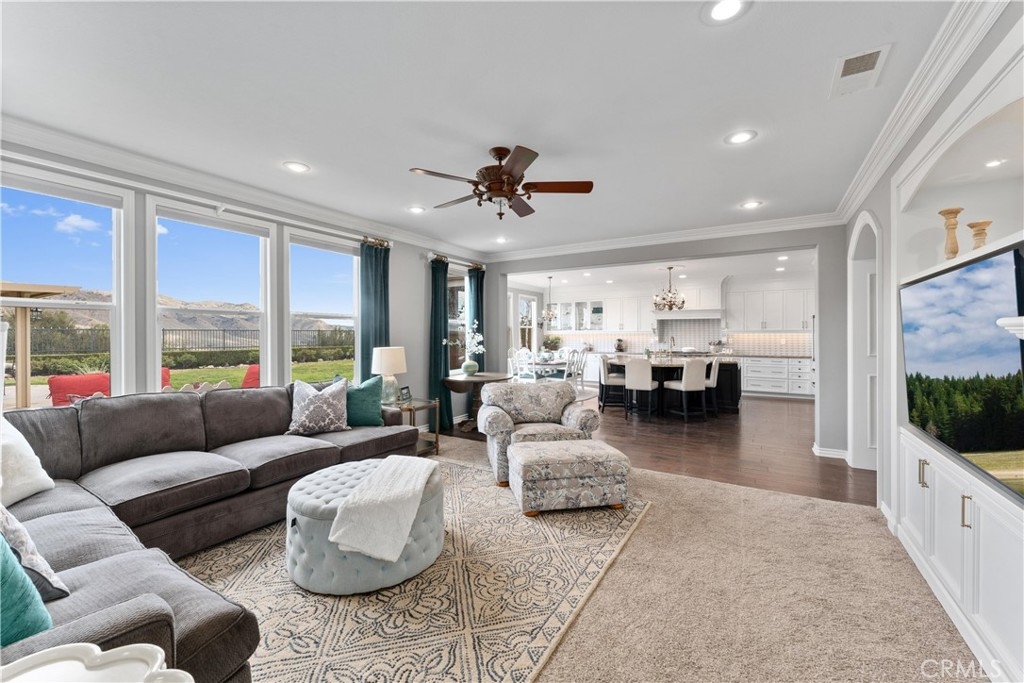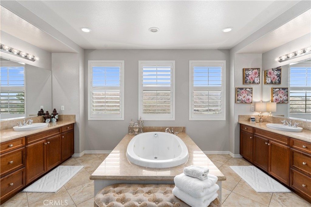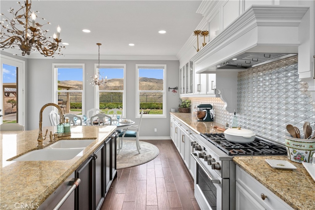 *UPDATED 5 BEDROOM SYCAMORE HILLS DREAM HOME* - Stunning Views, Remodeled Kitchen, Wine Room, Main Floor Jr. Suite - A RARE opportunity to own the most luxurious model offered in the gated Sycamore Hills neighborhood of Sycamore Creek. The large front porch leads to the oval entry that flows into 2 separate mirroring office spaces with plenty of natural light! French doors spill out to a quiet atrium that feels as if you have escaped to your own private sanctuary. The wrought iron gated Wine Room with plenty of wine storage is directly across from the formal dining room with room to host large gatherings. The sprawling Great Room has a large seating area, built-in cabinetry, fireplace and Mountain Views. The recently Remodeled Kitchen is the star of this designer inspired home. The cabinetry extends to the top of the 9 foot ceilings and has a custom range hood and large 6 burner range that will make even the novice chef feel like a star! The Cafe appliance package is complete with a French Door Oven, 6 burner range (A double oven kitchen!) and matching built-in dishwasher. The grand center island seats 6 comfortably and is a gem all to itself! The beautiful trim serves both beauty and function concealing hidden storage with sliding shelves! The upstairs features a large loft with plenty of room for multiple seating areas or for that perfect movie viewing! The 3 upstairs secondary bedrooms all have walk-in closets with room for storage. The Primary Suite is a true oasis featuring an oversized room with plenty of space. The grand built-in jetted tub sits in the middle of the spa-like bathroom with 2 separate vanities and a dedicated dressing table. The primary walk-in closet is a shopper's dream! The downstairs Jr. Suite is large enough to create a multiple function bedroom and features an attached full bathroom. The pool-sized backyard is the perfect place to relax and unwind with a built-in covered BBQ Island with plenty of seating to enjoy the surroundings! The home has 33 solar panels, 2 whole house fans (one dedicated to the Primary Suite), LED lighting and shutters on many of the windows! Sycamore Creek offers that California Casual lifestyle with 3 pools, splash pad, Clubhouse and walking trails! And Sycamore Hills close proximity to DeLeo Regional Sports Park makes it easy to access lighted walking trails, Pickleball, Tennis and Basketball courts, 2 dog parks, splash pad, playground equipment, BBQ spaces and so much more!