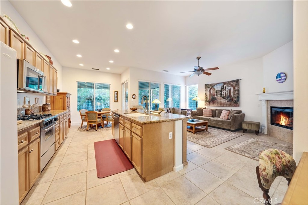 Highly Upgraded Satsuma floor plan Home - Welcome to Trilogy At Glen Ivy an Upscale 55+ Resort Adult Style living that offers amenities close at hand for Trilogy members to enjoy. Rare find, currently, this is the only Satsuma 1966 Sqft floor plan available in the community. The home boasts dramatic 10' ceilings with an open floor plan, formal living room and fomal dining room, office/den / or 3rd bedroom. Great room with a gas fireplace and built-in T.V. Center. The home has Granite counters in the kitchen with a breakfast bar, plus a breakfast nook. The home has Custom 18' tile throughout living areas and carpet in the bedrooms, Inside laundry room, security system, prewired for speakers, energy-saving ceiling fans plus extra attic insulation. You will enjoy relaxing in the private back yard with a full-length Alumawood patio cover which adds additional outdoor entertaining and living space Trilogy offers many amenities for the active adult. Trilogy communities are sprinkled across the USA, bringing more value to your gated 18 hole golf community. Amenities include a clubhouse for private events, table pool, card rooms, table tennis, arts & crafts, inside pool and state-of-the-art gym plus walking track, resort-style outdoor pool and spa, cabanas with cooking area, tennis, pickle and bocce ball courts, walking trails, Amphiteatre, Glen Ivy Golf & just down the road, Glen Ivy Hot Springs, A World-class Spa Retreat. The is Conveniently near shopping and commute.